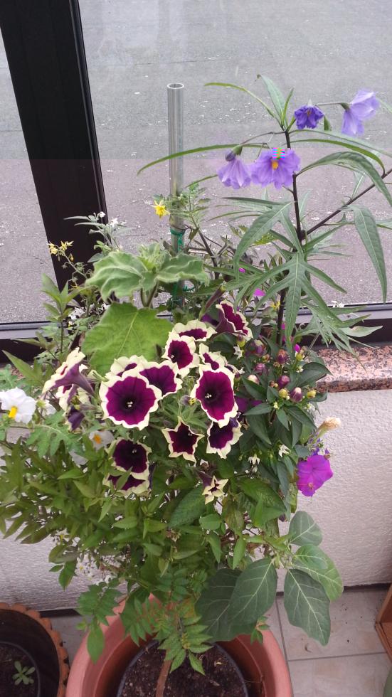 Tossiche o non, con scopo o senza non superando i 9 ortaggi ho aggiunto dei fiori: un paio di petunie un jasminoide e una lanterna cinese.