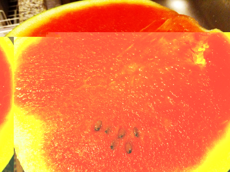 E' anche per me il primo anno che metto le angurie (e così siamo in tre  ) comunque una cosa te la dico subito: MI RACCOMANDO FAI I TRATTAMENTI CON LO ZOLFO PER PREVENIRE/COMBATTERE L'OIDIO, anche se le piante sono all'appparenza sanissime, altrimenti ti ritrovi come me che sto facendo il totoscommesse x cosa succederà prima, le piante che si seccano o le angurie ed i meloni che finiscono di maturare-come da foto- ! Detto questo, apporta del potassio, meglio se con un concime idrosolubile, in quanto serve per l'accrescimento ed il sapore dei frutti. Dai tanta acqua, ma smetti pochi giorni prima di raccoglierli, sennò sapranno di poco. Se dovesse piovere, cerca di tenerle sollevate con delle cassette, altrimenti c'è il rischio che ti si spacchino o che marciscano. Raccoglile quando vedi che la patina che la ricopre (tipo la pruina, cioè quella che si trova sull'uva e sembra polvere x intendersi) è scomparsa ed il cirro vicino al picciolo si è seccato. Prendi cmq tutto col beneficio del dubbio in quanto come già detto anche io sono un neofita! In ogni caso questa è quella che ho aperto oggi  Buona cocomerata!