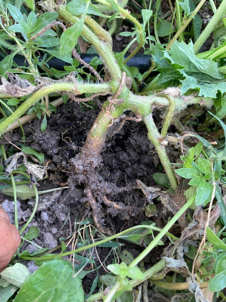 https://www.plantwise.org/knowledgebank/datasheet/21941Ad ogni modo per esplorare l'ipotesi suggerita da Marco bisognerebbe vedere le foglie come si presentano (non quelle disseccate ma se ci sono sintomi iniziali: clorosi e necrosi sui margini del lembo).