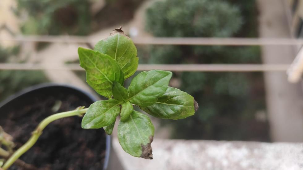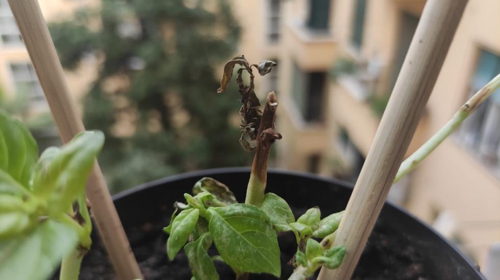 abbiamo questa piccola pianta di basilico sul davanzale della finestra a Roma, una volta era piu' grande...