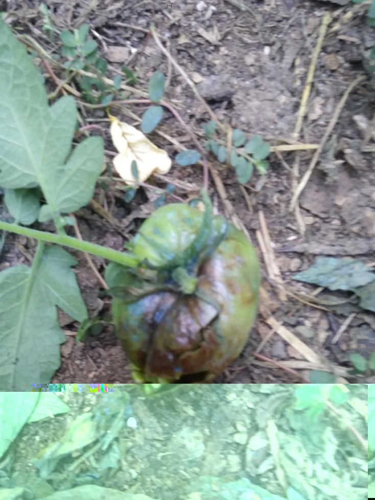 Vi metto le foto del pomodoro colpito e delle macchie nerr su di una foglia, scusate ma sta appassendo ed il pomodoro l'ho schiacciato io inavvertitamente.