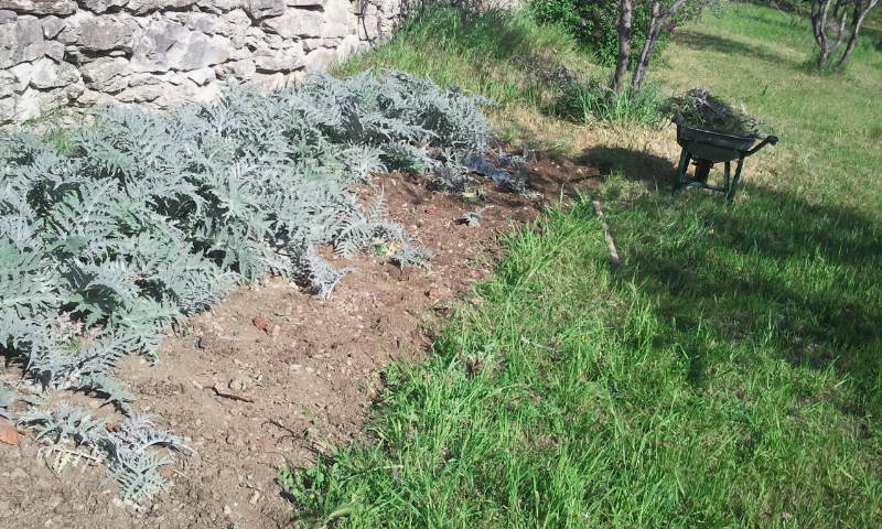 Ho tolto quasi tutte le erbacce intorno ai carciofi e zappettato intorno alle piantine come si vede dalle foto prima e dopo. Spero di non aver fatto peggio nel rivoltare il terreno. Qualcuno sa dirmi se c'e' un modo per avere dei carciofi piu' teneri? Lo scorso anno non erano proprio teneri ma forse e' dovuto al fatto che li ho raccolti tardi. Non necessitano di cure o concimi particolari giusto? Grazie per i preziosi consigli.