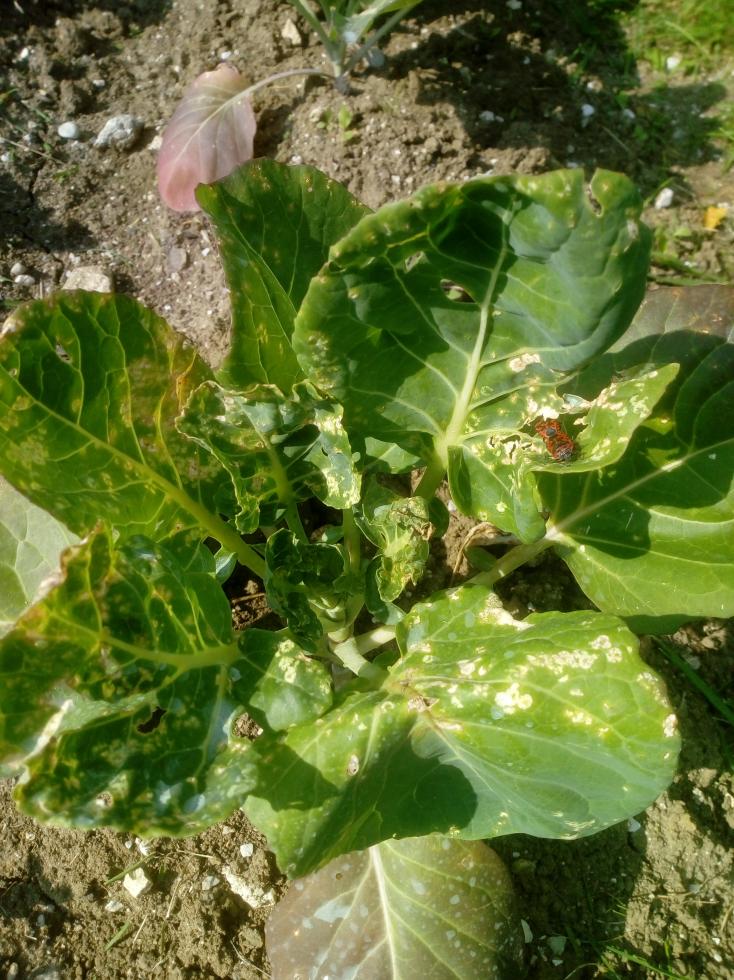 Avevo trapiantato una seconda fila di cavoletti, come si vede nella foto 1 per avere una produzione posticipata. Mi pare che comincino ad ammalarsi.