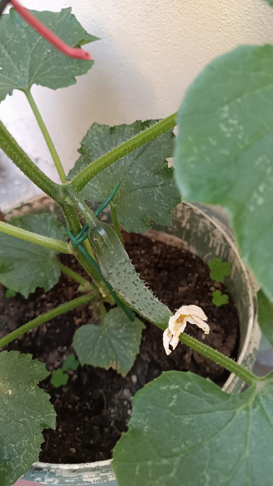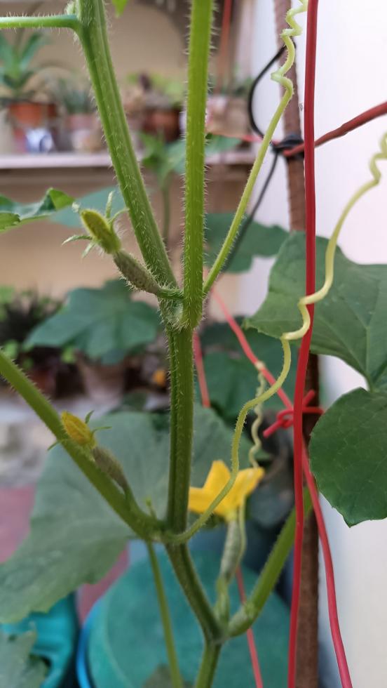 Quest'anno ho voluto provare a trapiantare due cetrioli in due contenitori da 25 lt collocati in un cortile interno. Non avendo stallatico e nemmeno letame pellettato ho messo concime granulare, le piantine sono cresciute sveltamente ma qualcosa non va. in ogni ascella gambo/foglia nasce un frutticino che purtroppo resta microscopico. Come si vede nelle foto quello più grande misura circa 5 cm ed è praticamente fermo. Temo che dovrò accontentarmio di un pò di verde e qualche fiorre giallo.