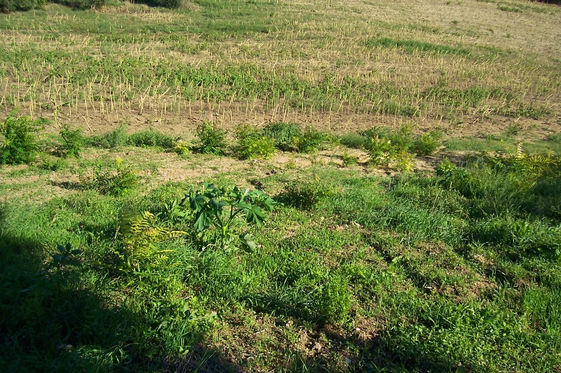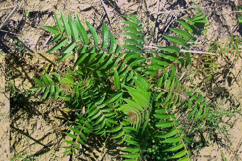 è l'ailanto, pianta troppo invadente e infestante, estirpa, diserba ed elimina anche le piante grandi attorno all'appezzamento, se puoi.