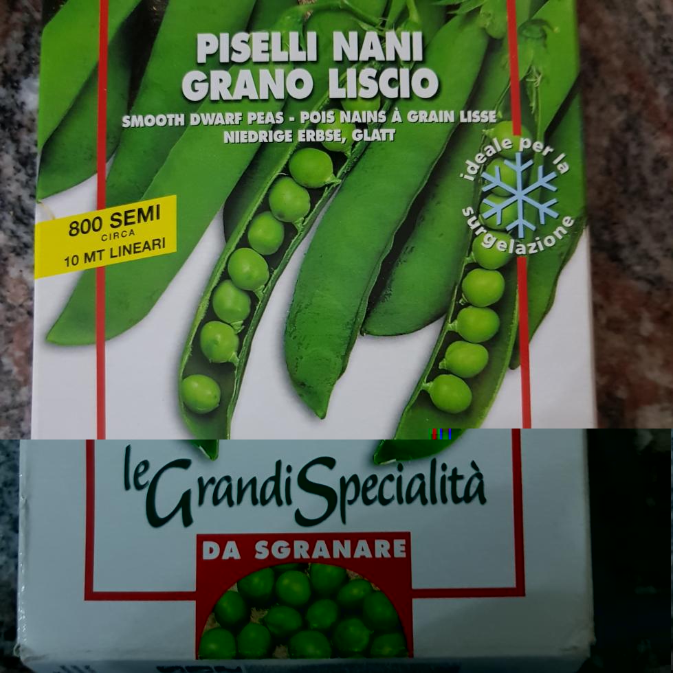 Salve. Ho acquistato in un negozio una scatola di semi di piselli che mostro in foto, li ho seminati. Sulla scatola non e indicato quanti cm crescono quindi non so se mettere una rete per farli arrampicare o non hanno bisogno. Non essendo un esperto potete indicarmi voi dalla foto allegata se riuscite a capire la razza e quindi la misura della crescita e se hanno bisogno della rete per aggrapparsi? Grazie.