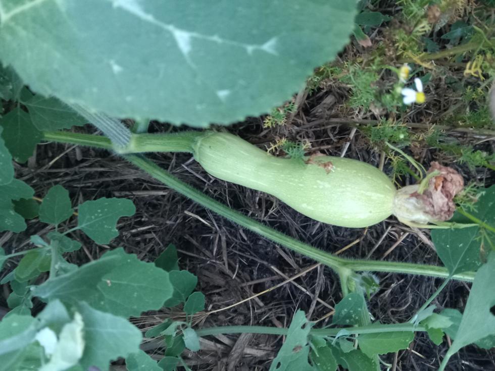 Dalle foglie sembra una Cucurbita moschata, stabilire la varietà è impossibile ad ora. Alcuni esempi di varietà potrebbero essere lunga napoli, trombetta d'albenga, zucca butternut(piuttosto comune), violina, zucca provenzale