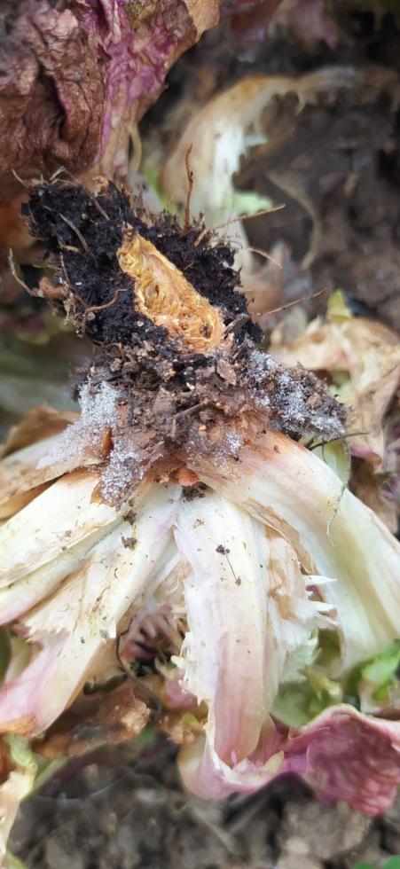 come in allegato, potete spiegarmi cos'è successo alle mie lattughe? sembra che qualcuno abbia mangiato del tutto la parte radicale e poi non capisco cosa siano quelle puntine bianche...
