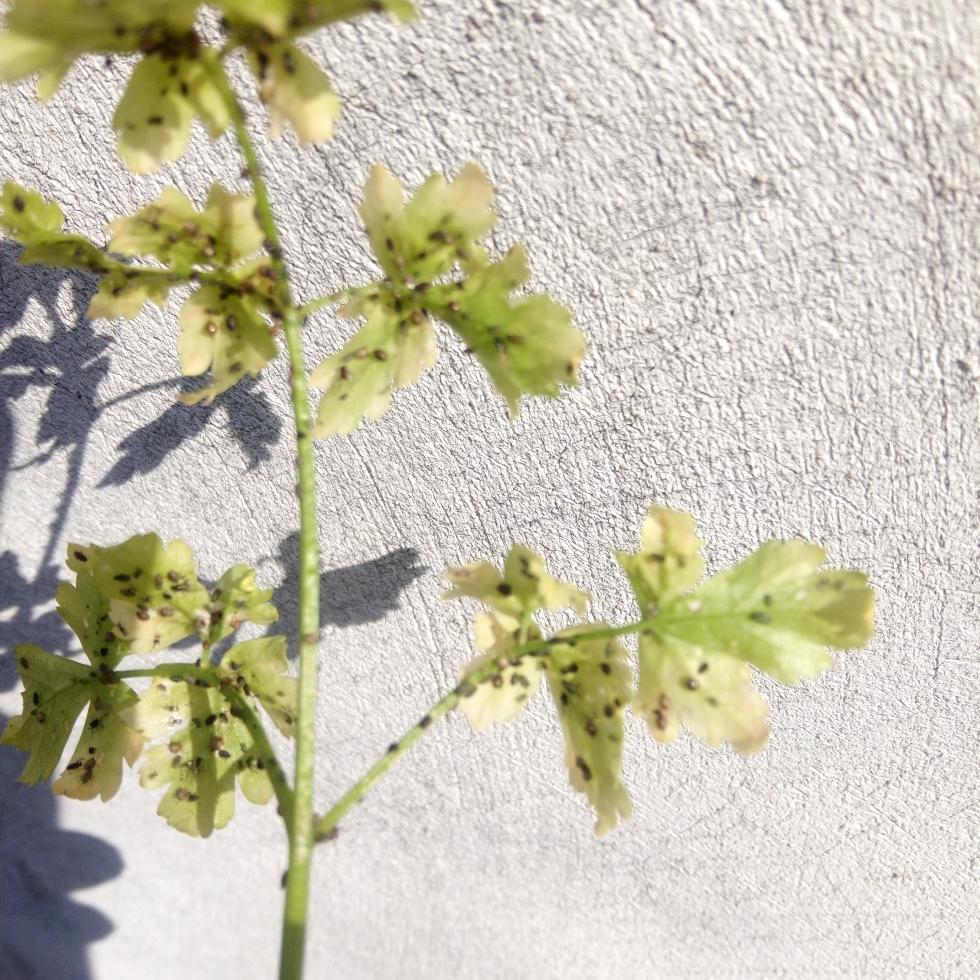 Se sono afidi sono davvero preoccupato, perché questo prezzemolo si trova vicinissimo alle mie piante di peperoncino. Se la situazione è grave, mi troverò costretto ad estirpare il prezzemolo prima che i peperoncini riprendano a germogliare