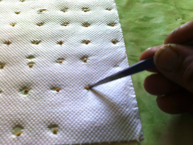 Scusa baroreddu, ma non vedo la differenza tra il perdere tempo nel metterli prima sul tovagliolo (che, essendo bagnati, si attaccano all'attrezzo che usi) o dopo a seminarli. Oltretutto occupano più spazio...