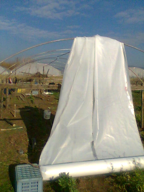 La prima è relativamente facile da coprire, basta aprire il telo, una persona da un lato e una dall'altra, e farlo scorrere sopra gli archi. Oppure legare una fune da un capo e stenderla chiusa, per poi aprirla Allegato: