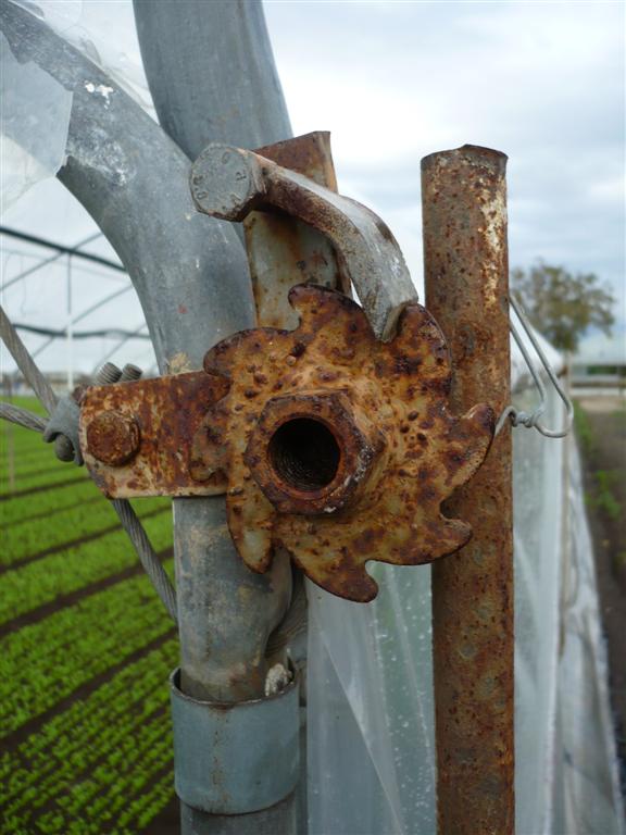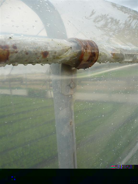 lo stesso vale con le serre multiple, però in questo caso bisogna camminare sui tubi avvolgi-telo che stanno alla gronda... Steso il telo, si tende sui frontali, fissandolo con dei clips ai tubi avvolgi-telo. Allegato: