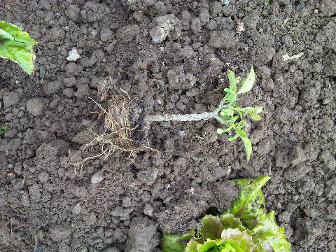 I pomodori e le zucche mostravano invece qualche fittone che si era insinuato nel terreno dell'orto. Ho iniziato alloraa estrarre le piante a campione, ho ripulito la zolla fino ad arrivare alle radici, ho allargato la buca e l'ho riempita di terriccio per rinvasi, quindi ho rimesso a dimora le piante. Ho fatto così anche con alcuni cespi di Canasta che avevano bloccato la crescita e ho posizionato in tal modo nuove piantine di fagioli che ho fatto crescere in casa. In questi de ultimi casi, essendo gli esemplari in 'batteria' un'eventuale ripresa vegetativa e successivo sviluppo, dovrebbero notarsi sbito.