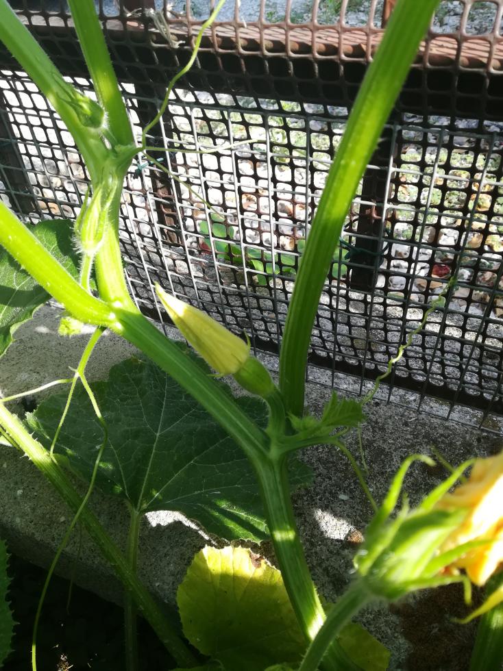 Grazie. Stamattina miracolo, un fiore femminile si è aperto, visto la difficoltà con cui questa pianta fa i fiori femminili l'ho impollinato manualmente con un pennellino, vedremo se poi il frutto si formerà. Alla fine questa è una zucca per scopo ornamentale, l'importante è che diventi arancione, non deve essere buona, quindi può anche allegare tardi.