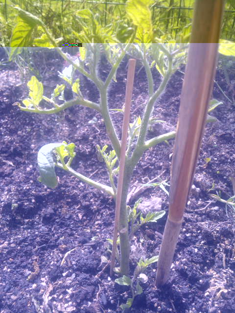 la melanzana è ridotta male ma vedrai che si riprenderà, il pomodoro sta crescendo già con due fusti, io lascierei solo quelli, toglierei dutti i getti laterali