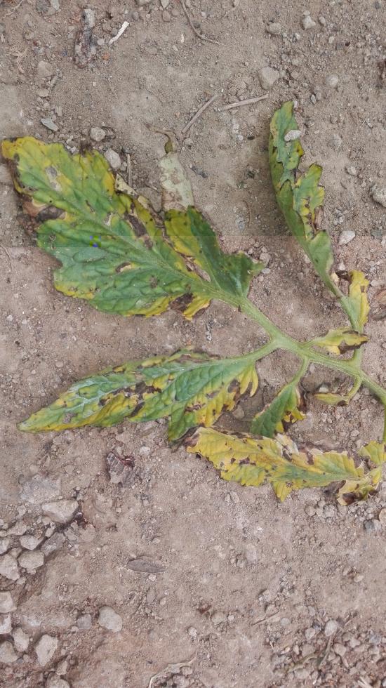 Ciao a tutti. Ieri sono entrato nel campo mio campo per irrigare ed ho trovato i miei pomodori con queste macchie sulle foglie. Non penso sia peronospera. Sabaato sera ho trattato con due insetticidi uno per ragno rosso e un altro per vermetto può essere dovuto a quello?