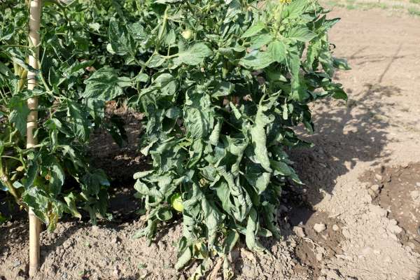 Anche io avevo piante con foglie arricciate verso l alto, poi ho aumentato l annaffiatura , ho sfoltito le piante e ho risolto ,sembra un eccesso di comcimazione azzotata . Saluti Mago