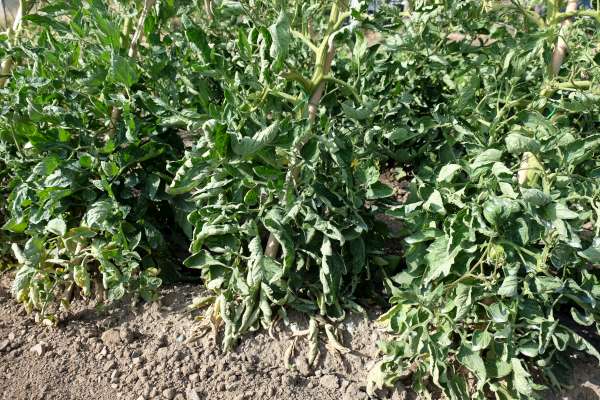 Mi unisco a questa discussione, se non dispiace all'autore del thread, perché ho un problema che direi perfettamente uguale. Come si vede dalle foto, le foglie sono arricciate in tutte le piante anche di varietà diverse e lo stesso problema è accaduto anche l'anno scorso. Se qualcuno mi sapesse dare un aiuto gliene sarei debitore. Metto le immagini delle mie piante di pomodori.