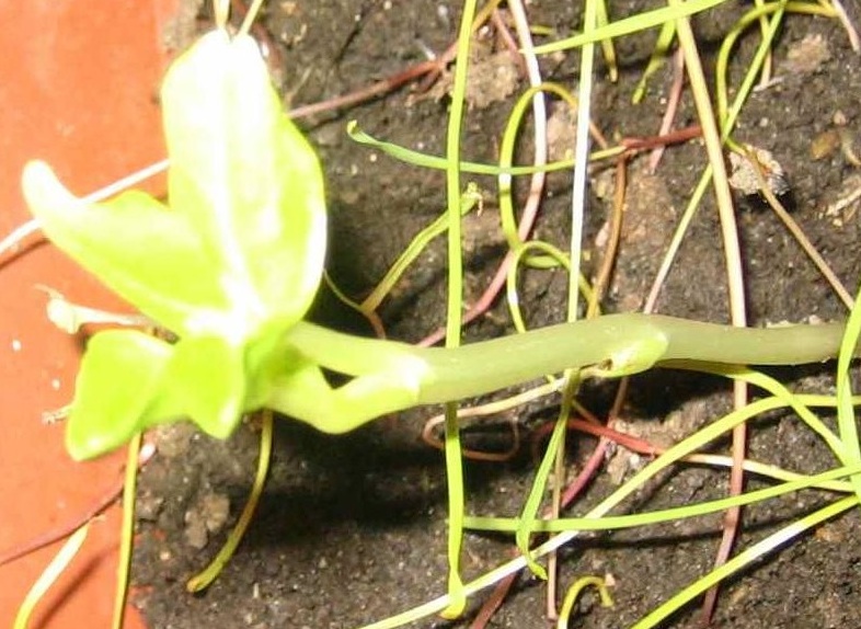 Mi è nata questa pianta in garage dentro a un vaso. Non riesco però a capire cosa sia??? Sta crescendo a temperature di garage e con poca luminosità però se la confronto con i miei pomodori che tengo riscaldati -ma stentano- ha uno sviluppo pazzesco!