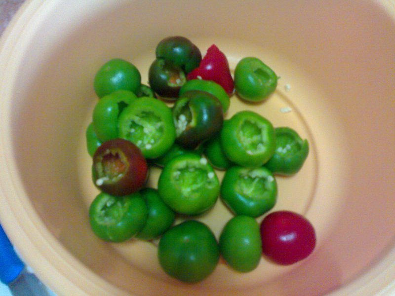 ciao ragazzi voglio condividere con voi quella che è stata la mia mattinata - raccolta peperoncini "ciliegini" così vengono chiamati da noi, dal mio umile orto famigliare - pulitura - ripieno - conservazione allego foto...