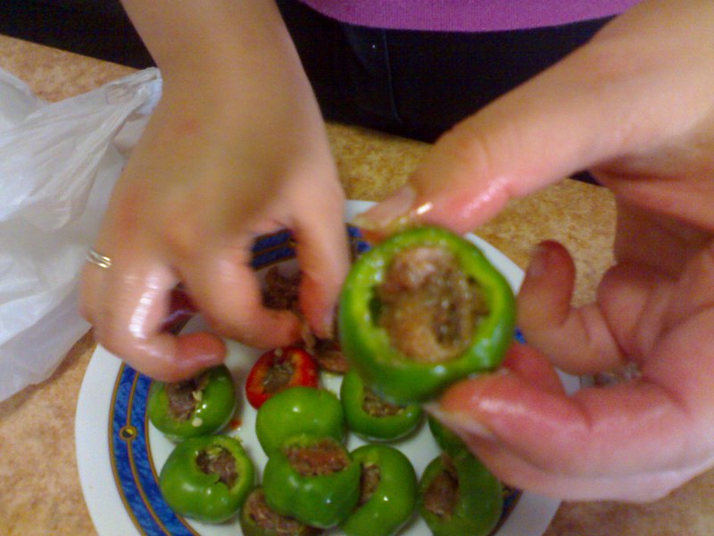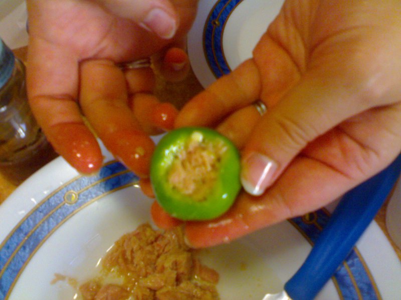 io ho provato ma i peperoni verdi sanno apunto di "verde" .. è vero che sono molto piccanti ma basta mangiarne poco alla volta io come ripieno metto capperi alici e tonno frullati .... ciao Nino