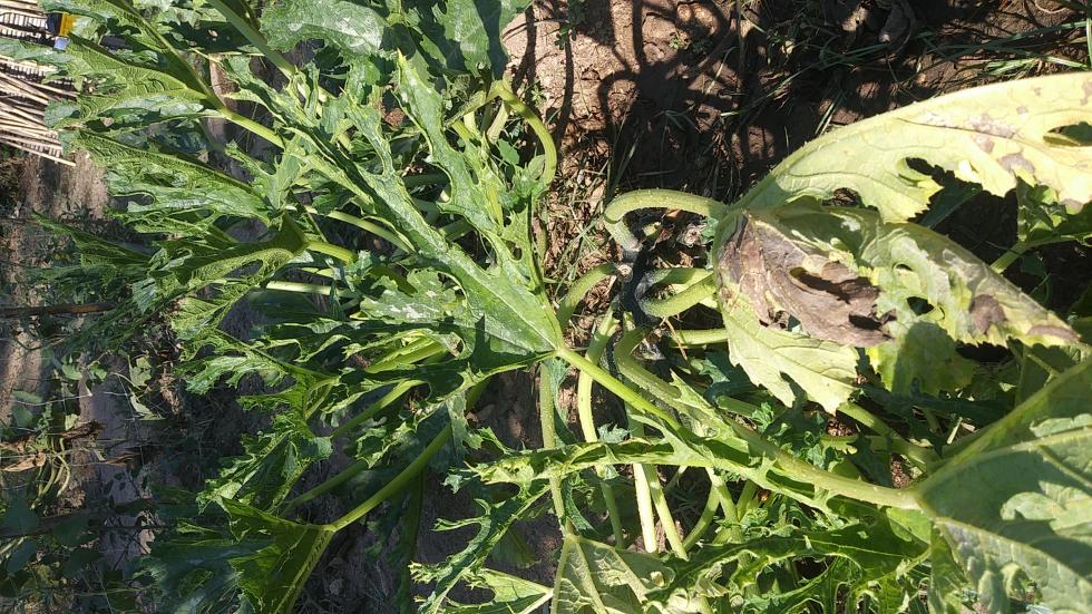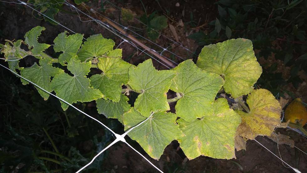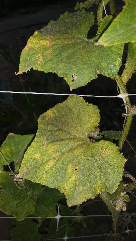 ... altre foto dei cetrioli che erano vicino alle zucchine... sono corso ai ripari ma temo tardivamente... quando le misi a dimora notai che alcune avevano delle deformità fogliari e stentavano a crescere evidentemente avrei fatto bene a eliminarle subito... temop che abbiano contaggiato le zucchine