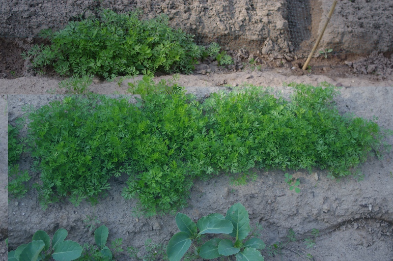 Eccomi scoprire in estremo ritardo che è necessario diradare le carote lasciando uno spazio di 5-6 cm fra ogni piantina per permettere lo sviluppo delle radici.