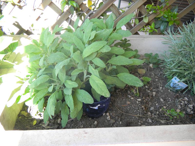 salvia in terrazzo con sistema bottiglia buca per innaffiamento