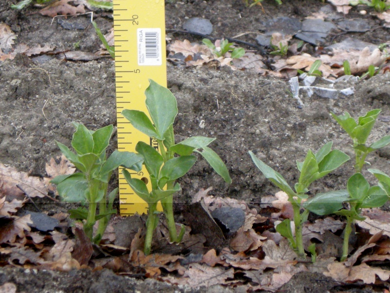 le fave sono cresciute bene alte circa 10 - 12 cm