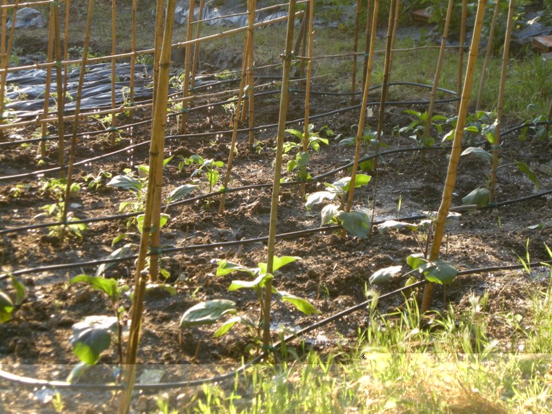 oltre a pulire la terra e un po di paciamatura che gli faccio ?? ho messo delle melanzane e peperoni vari e alcune file di pomodori e ho montato il tubino gocciolante senza plastica sulla terra tenedolo un po alto.. per gestire meglio la situazione.. Allegato: