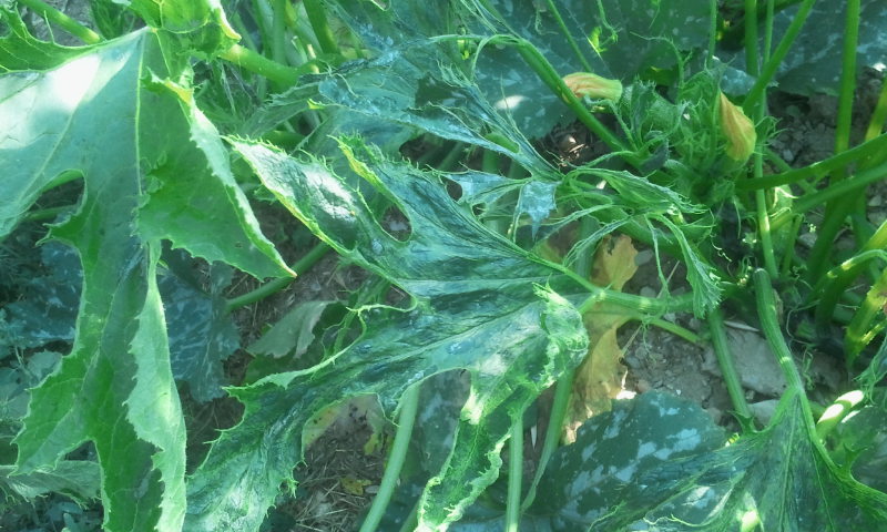Improvvisamente tutte le mie piante di zucchine presentano queste foglie. Siamo solo a metà ciclo e' possibile far qualcosa? Importante e' che non danneggino altre colture vicine.