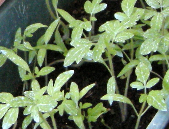 si vedono bene, le prime foglie in basso sono lunghette e liscie, mentre le altre sono frestagliate e hanno la forma carateristica , prima di trapiantarli bisogna aspettare che abbiano almeno due foglie "vere"