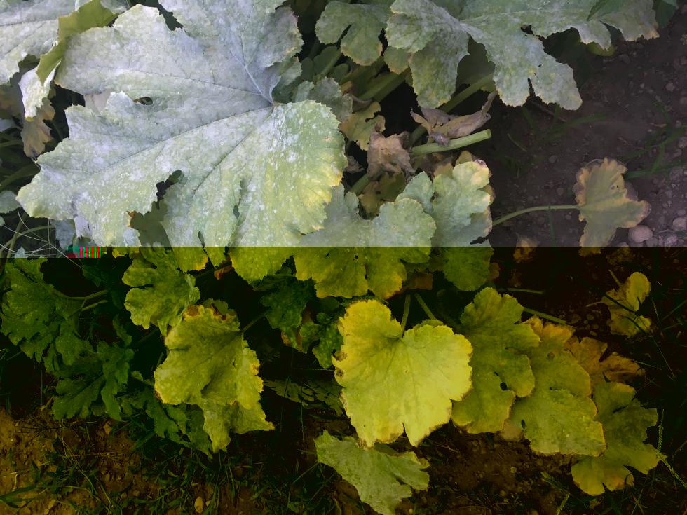 Ciao, Da qualche giorno le foglie della mia pianta di zucchina si stanno imbianchendo per poi ingiallire e seccarsi anche se la produzione di frutti prosegue. Cosa può essere? Si può intervenire in qualche modo? Grazie  Vi allego delle foto