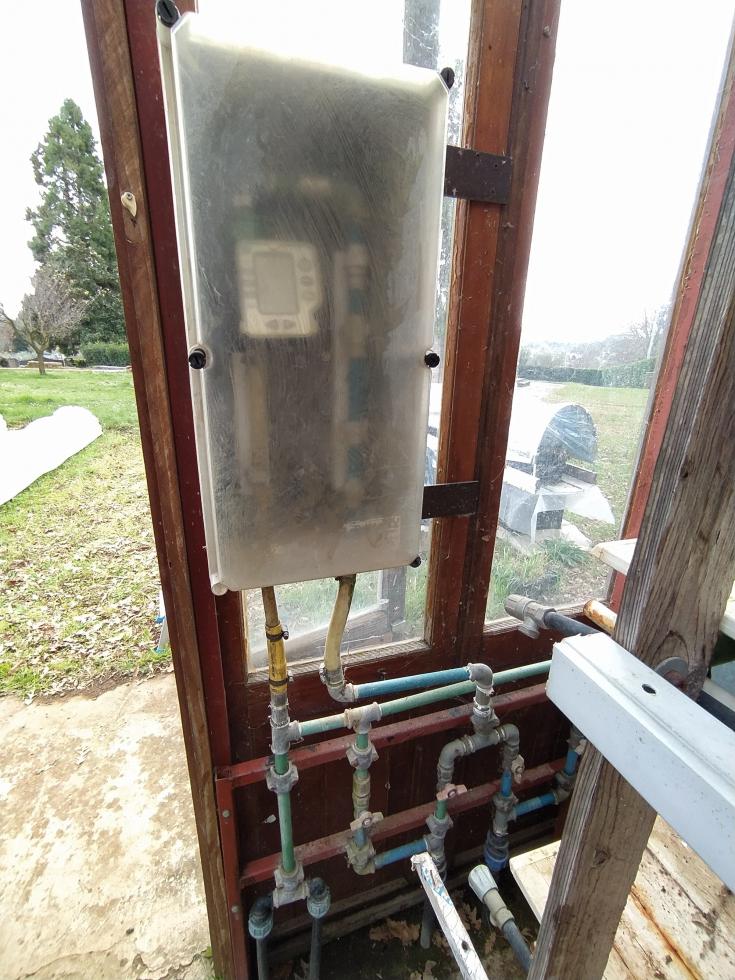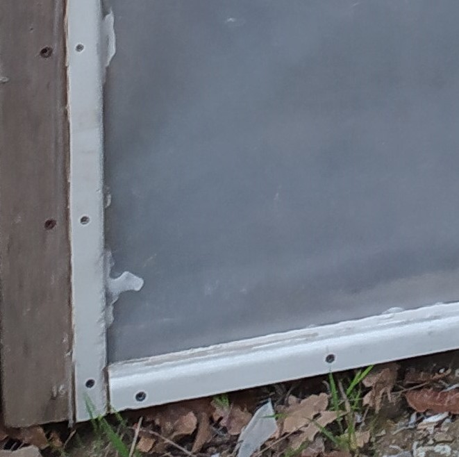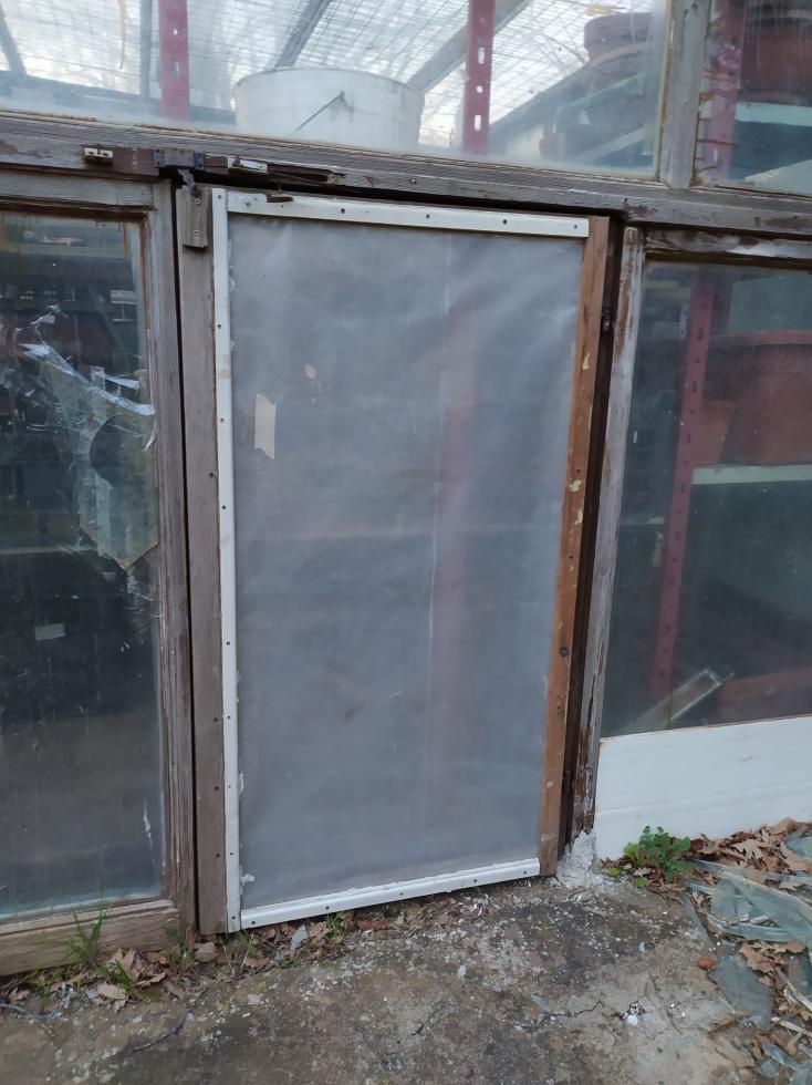 imprevisti e riparazioni, piccole disattenzioni ed il vento fa danni. sostituzione del vetro frantumato con doppio telo polietilene che mantiene il calore meglio del vetro.