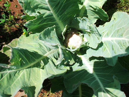 Matilde, complimenti, il violetto! mi dicono che sia delizioso, il nostro è (sarebbe) il cavolfiore comune. Ad ogni modo, ecco le foto, una panoramica delle piante di cavolfiore, una pianta tanto per vedere come sono tutte tranne due che hanno fatto un fiore piccolo piccolo...