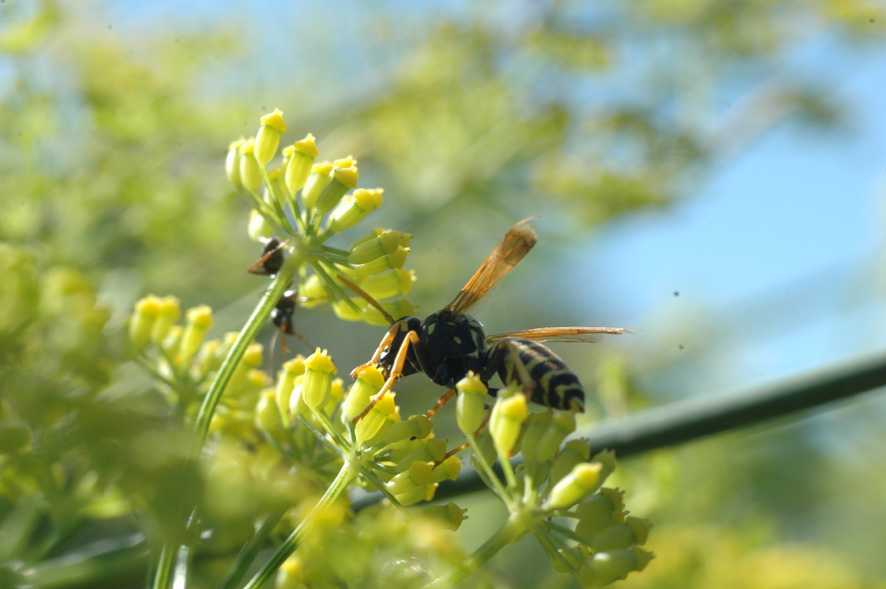 Ora ho notato che i fiori sono invasi da miriadi di insetti, dalle formiche alle mosche, dai calabroni a una sorta di cimici rossonere ma soprattutto da piccole vespette. e non vorrei che siano loro la causa della mancata fruttificazione. In teoria dovrebbero favorire l'allegagione ma di questi tempi non si sa mai...