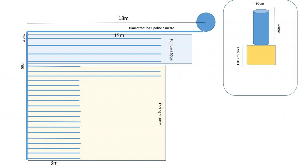 Salve, ho un orto, la cui configurazione è riportata nell'immagine allegata. A tal proposito chiedo un vostro parere in merito ad un eventuale irrigazione temporizzata. Cosa mi consigliereste? Avendolo già in casa, ho provato un normale temporizzatore da giardino, ma ovviamente non ce la fa a garantirmi una copertura totale. Avevo pensato ad una elettrovalvola a batteria (poichè non ho disponibilità di corrente), ma la gran parte hanno pressione minima di erogazione pari a 0,5bar. Sono gradite anche eventuali soluzioni artigianali Grazie in anticipo