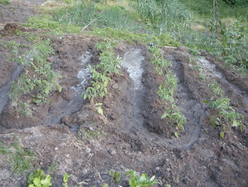 dunque tutti noi seminiamo a file, opure trapiantiamo a file, poi è evidente che se parliamo di scorrimento serve un solco, quindi rincalziamo le colture, e quindi abbiamo creato il solco, e se siamo bravi lo creiamo in pendenzal'acqua tramite un tubo, un secchio, o quel che si vuole la si immete da monte, e , come dice nino, l'acqua la va a la bassa, pertanto si riesce ad irrigare tutto, io ho anche detto che per non creare zone più umide di altre metto un secchio a monte, un secchio al centro, ed un secchio a valle facendo così l' acqua riempie il solco e penetra nel terreno sia lateralmente che in profondità.