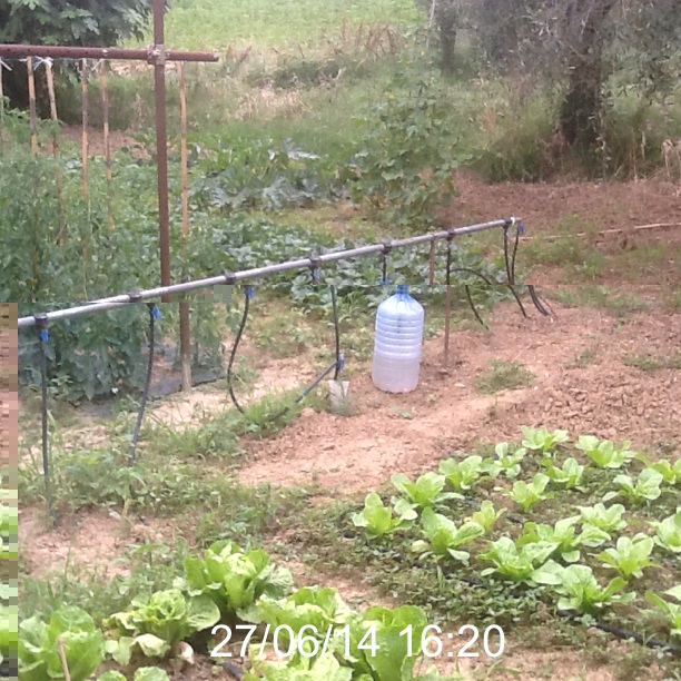 Per assicurarmi che l'irrigazione fosse avvenuta perfettamente mi sono inventato questa semplice soluzione in pratica ho preso un punto goccia e lo infilato dentro il bottiglione di 19 Lt avendo programmato la centralina per due accensioni settimanali per 1,5 ore praticamente ad ogni irrigazione trovo 6 Lt Ogni 3 irrigazioni se il bottiglione non è pieno son cxxxi amari Se devo irrigare pochissima roba al di fuori della programmazione faccio partire la centralina in manuale chiudo tutti i rubinetti delle linee che non debbo irrigare a questo punto se dovessi usare soltanto 3 mt di ala gocciolante quindi pochissima acqua, apro un rubinetto e rimando l' acqua in eccesso dentro il pozzo