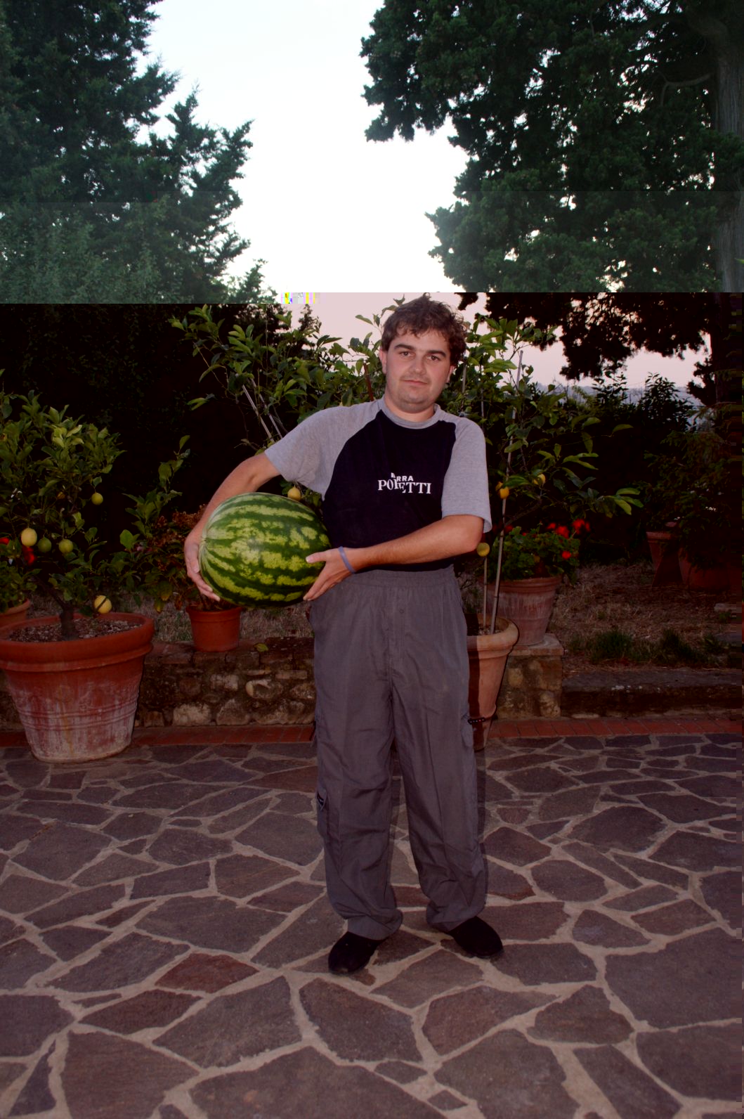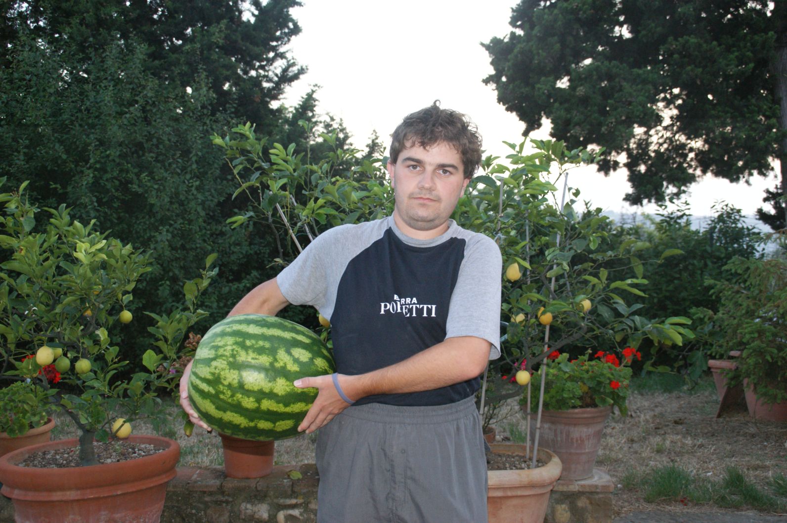 Complimenti Francesco per la bella anguria! anch'io quest'anno ho provato a comprare una pianta innestata ma ho sbagliato l'epoca di maturazione raccogliendo l'unico frutto troppo presto! il prossimo anni mi andrà meglio! te come hai fatto a decidere il momento della raccolta? grazie, Luke
