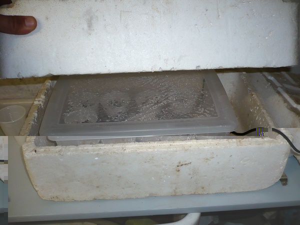 ok vediamo quanto ci mettono questi, io la temperatura lo messa a manetta l'acqua è 32° ma i semi che sono sono sopra non arrivano a 32° sara sui 28° con il tappo si crea una bella condensa che ricade sui semi.
