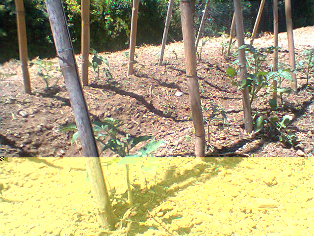 Questa è la situazione attuale, ho tolto quelle con le macchie, dato del rame con nebulizzatore, e ho annaffiato alla base della pianta la sera, secondo voi va bene come le ho piantate? E' bene piantarle in cima alla cunetta e fare tipo un avvallamento?