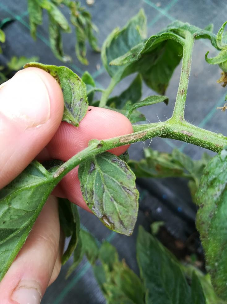 Macchie e arricciamento foglie pomodoro in serra