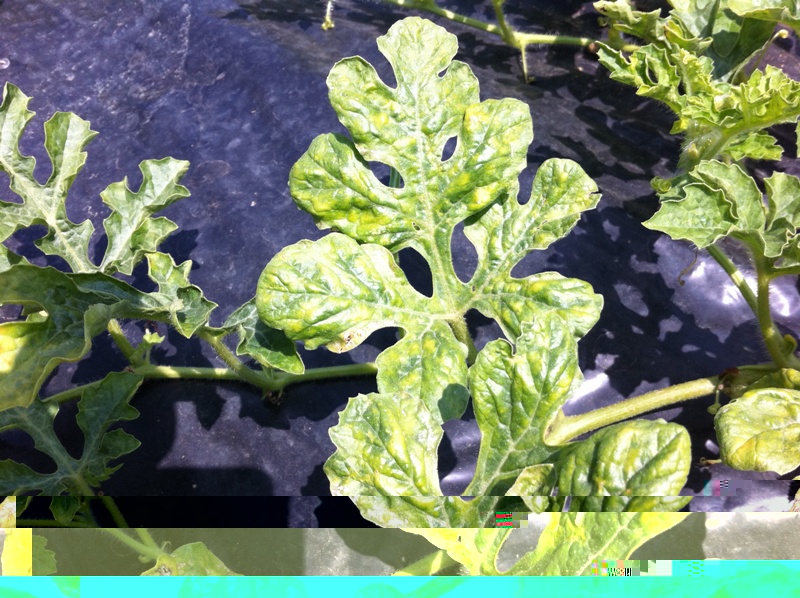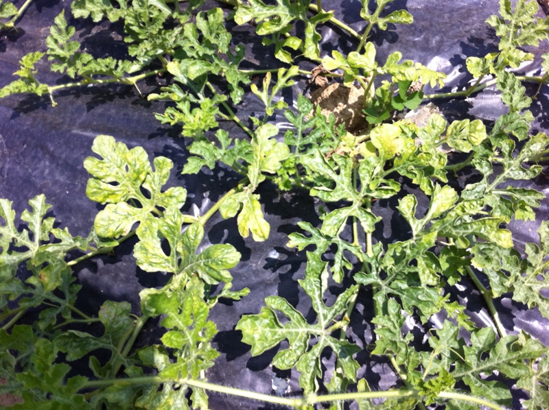 nn sembrerebbe una virosi sull'anguria ma credo + sintomi patologici molto probbilmente qlc peronospora cmq le piante appaiono molto stentate