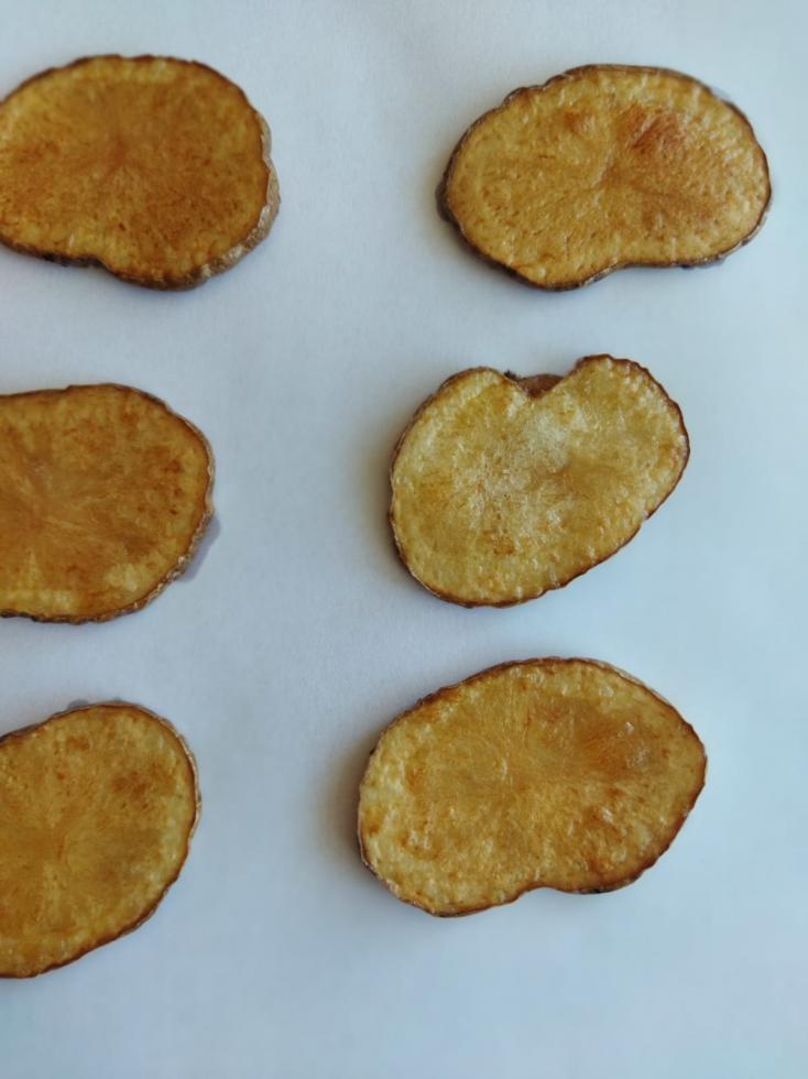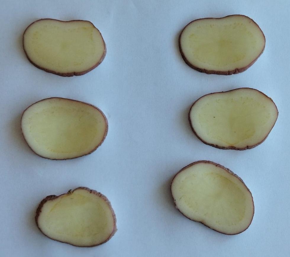 Prova a farle a fette e a friggerle in quanto questa malattia deve il nome di 'zebra chip' proprio dall'aspetto zebrato che la polpa assume specialmente a seguito di cottura (vd. foto 1).