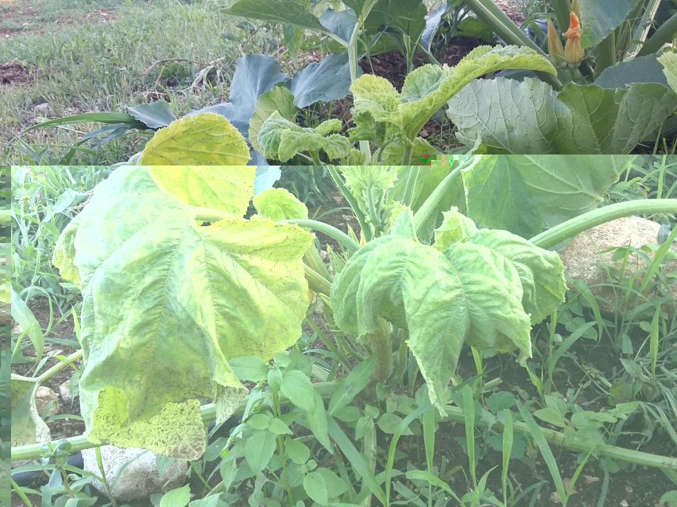 Dovresti fare delle foto alle foglie piu giovani. Se non è mosaico potrebbe essere giallume nervale delle cucurbitacee