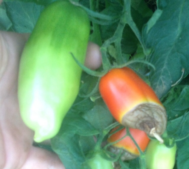 Marciume apicale. Elimina quelli colpiti e dai calcio. Vedi cosa rimedi. Puoi usare il nitrato di calcio da dare via radici oppure del calcio fogliare (esempio il chelato) da irrorare sulle foglie. Alcune varietà soffrono di questa patologia.