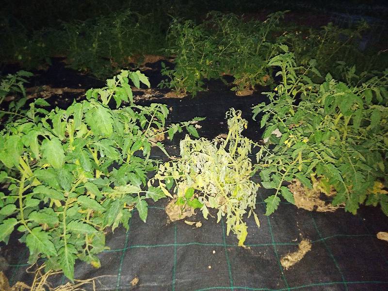Ho piantato dei pomodori in un telo da pacciamatura su un terreno abbastanza argilloso e hanno iniziato a soffrire (alcune piante che man mano eradico) di marciume pedale. La base della pianta è nera, le foglie si appassiscono.