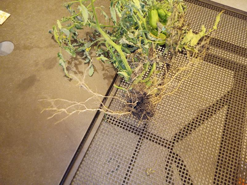 Le radici sono abbastanza buone (bianche, 30cm), le foglie non presentano grosse problematiche oltre a qualche segno di peronospora nelle più vecchie.