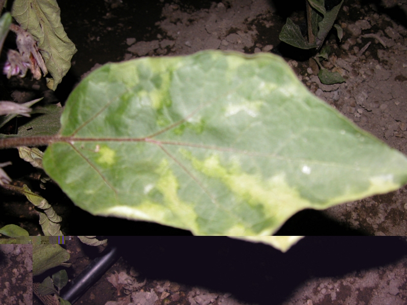 Su una delle mie piantine di melanzane capita quello che vedete in foto. Sapreste indicarmi di cosa si tratti?La pagina inferiore delle foglie è libera da ogni fitofago. Grazie.